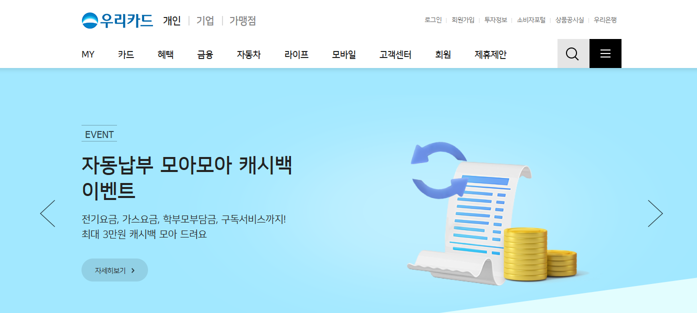 우리카드를 사용하고 있다면, 지금 바로 홈페이지에 접속해보세요.