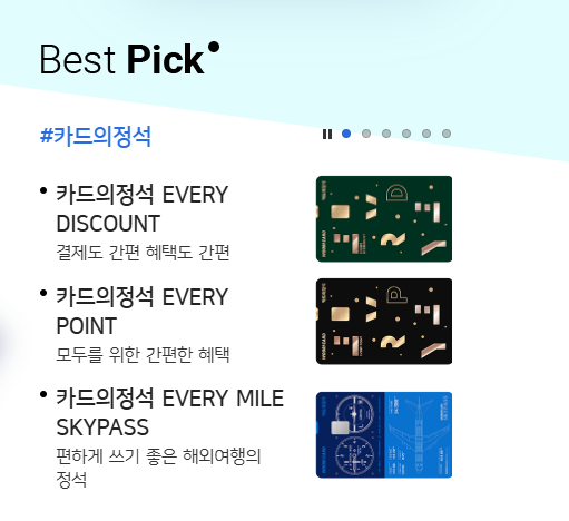 - 신용카드/체크카드 비교 가능: 혜택별, 연회비별로 다양한 상품을 한눈에 비교할 수 있습니다.