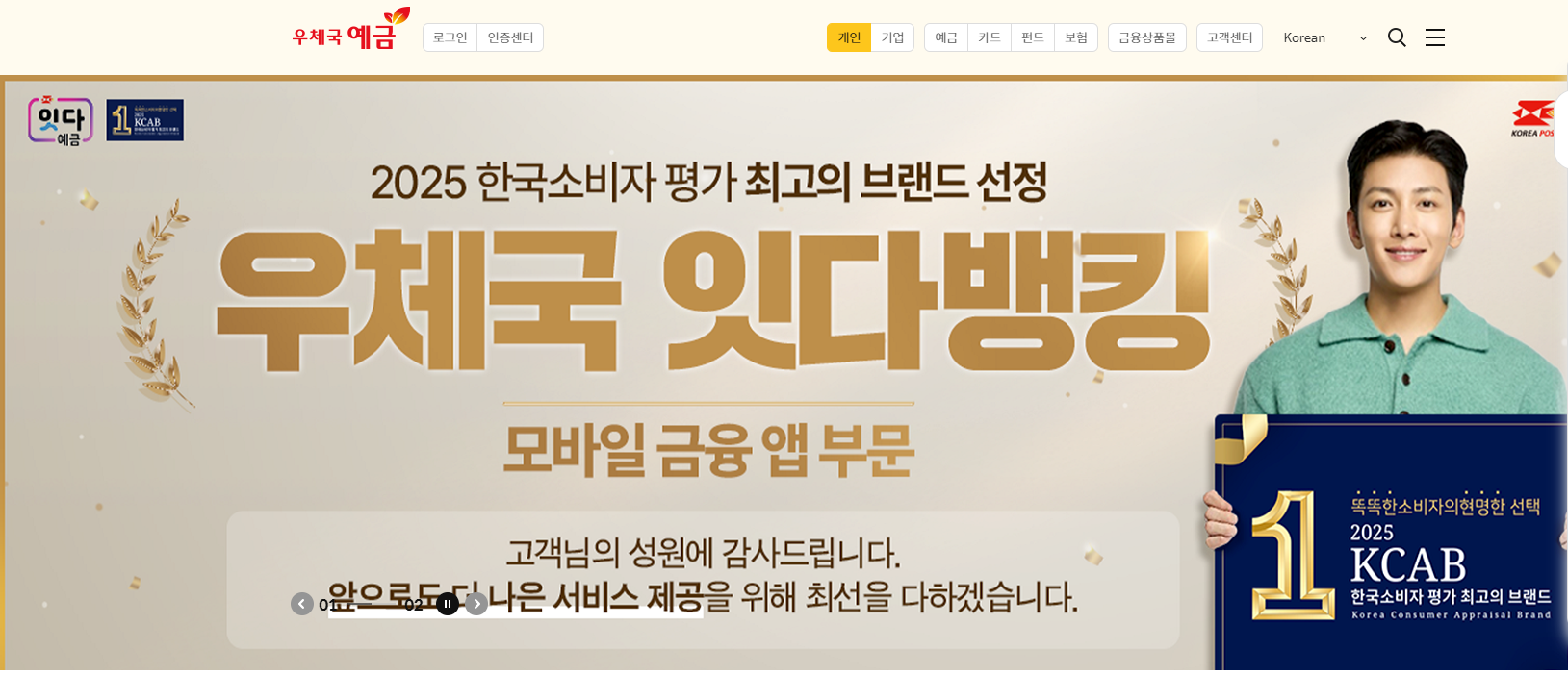 우체국 인터넷뱅킹 홈페이지
