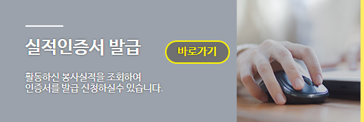 봉사활동 후 반드시 담당자에게 실적 입력 여부를 확인하고, 마이페이지에서 주기적으로 확인하세요.