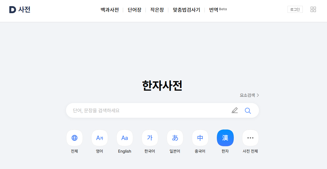 먼저 포털 사이트 다음(daum)에서 한자사전 페이지로 이동합니다. 별도의 로그인 없이도 누구나 바로 기능을 이용할 수 있습니다.