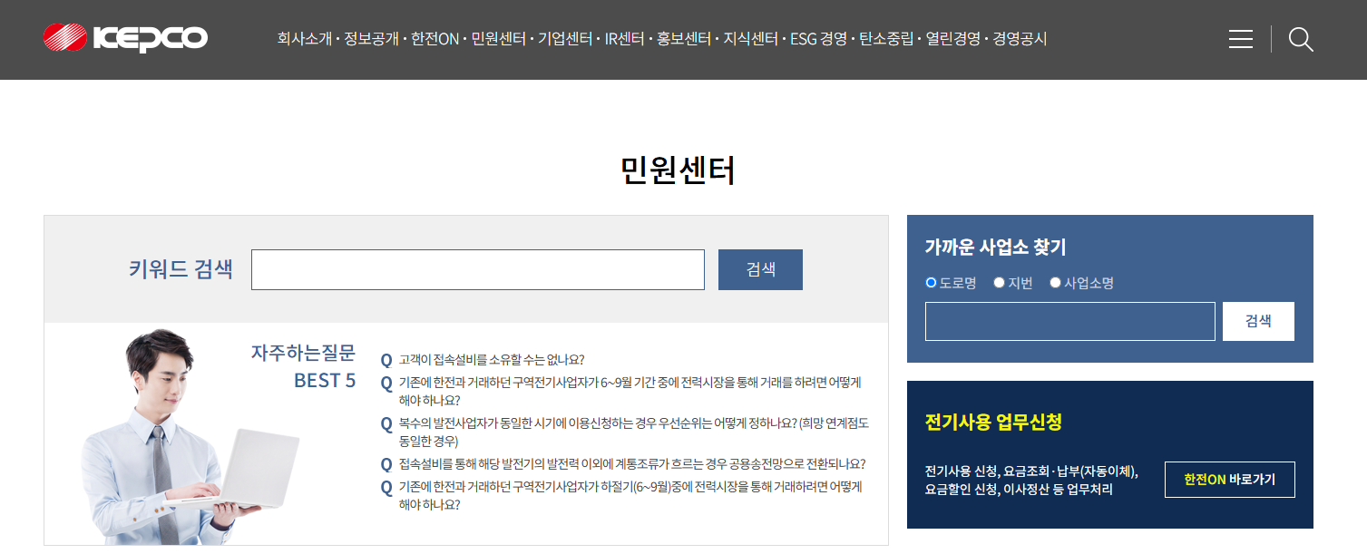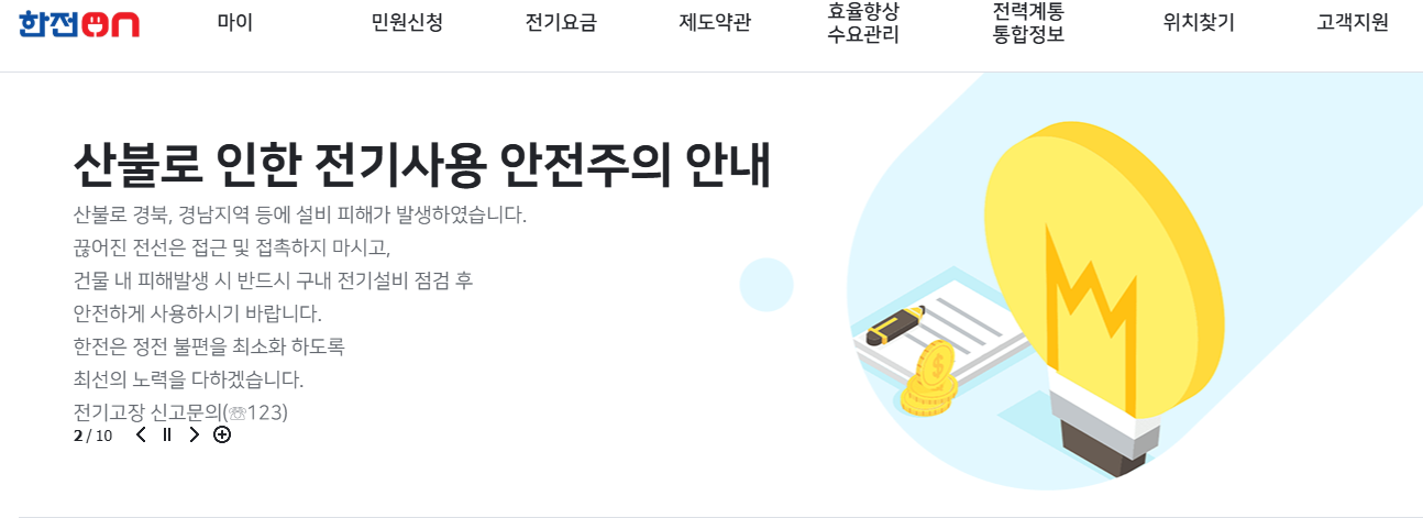 - 운영시간: 24시간 상담 가능 (전기 고장, 정전 신고 포함)