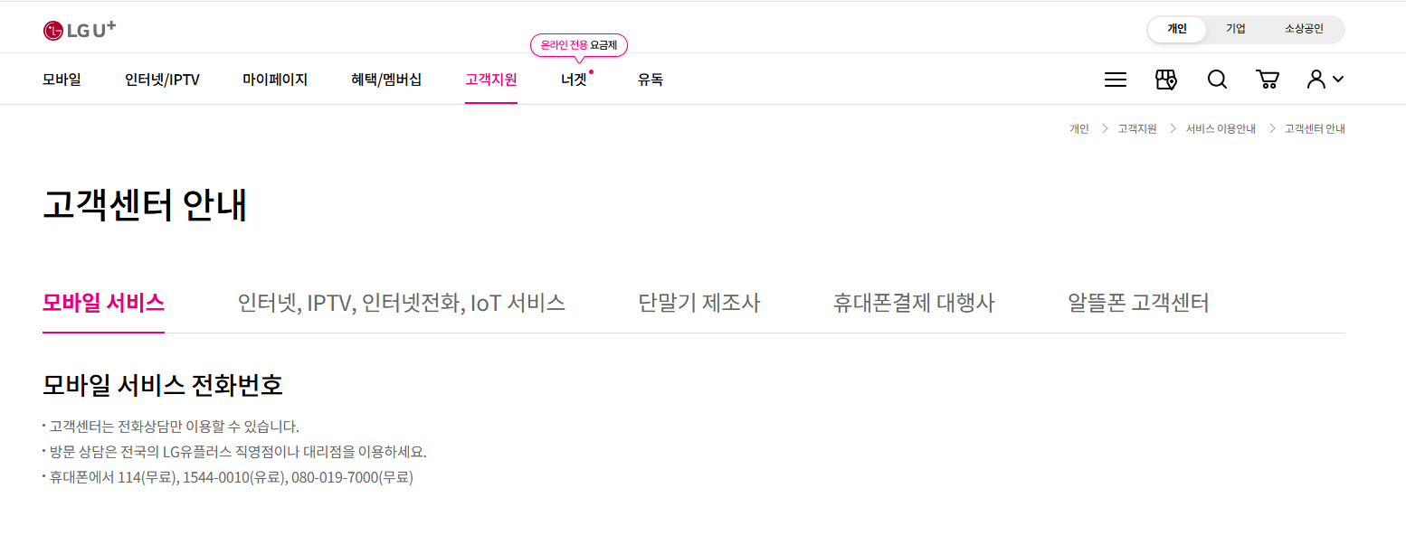 고객센터 안내 < 고객지원 | LG U+