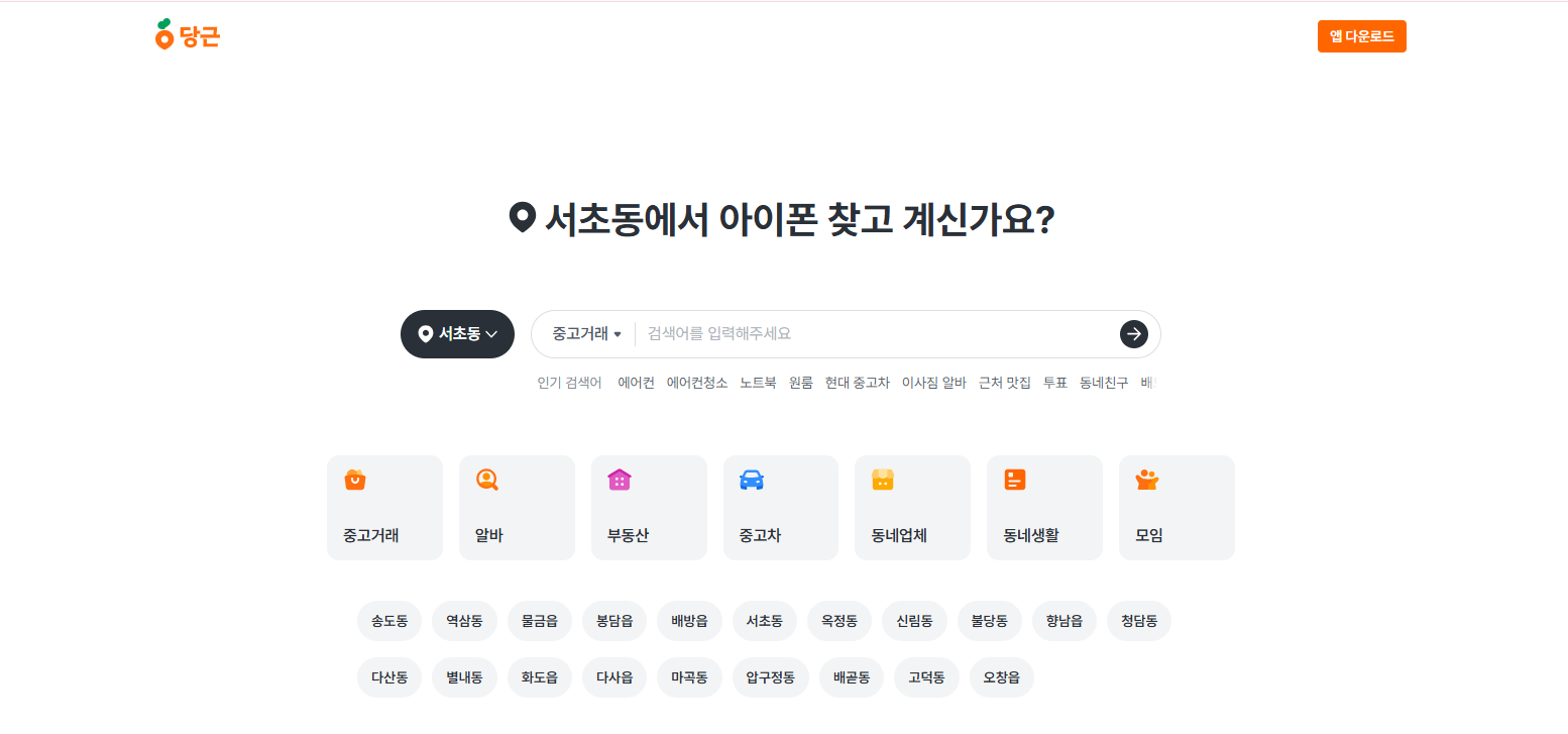 중고 거래부터 동네 정보까지, 이웃과 함께해요. 가깝고 따뜻한 당신의 근처를 만들어요.