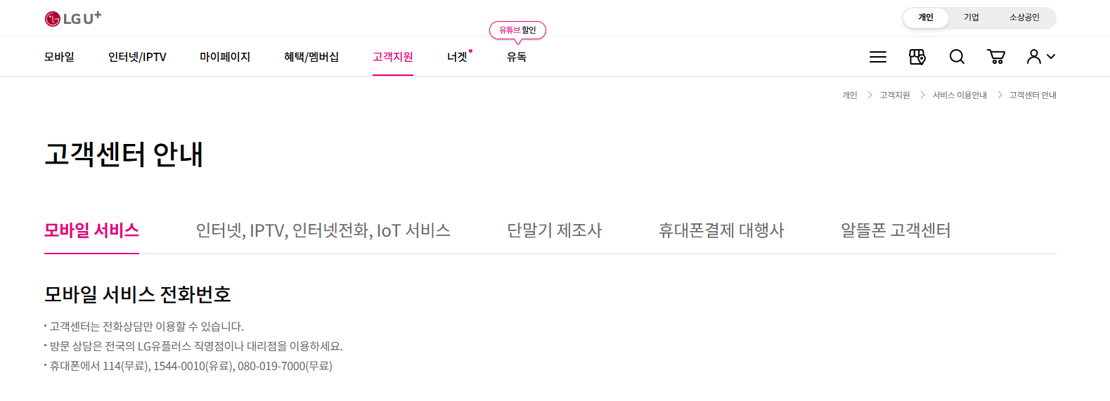 LG유플러스 고객센터 전화번호