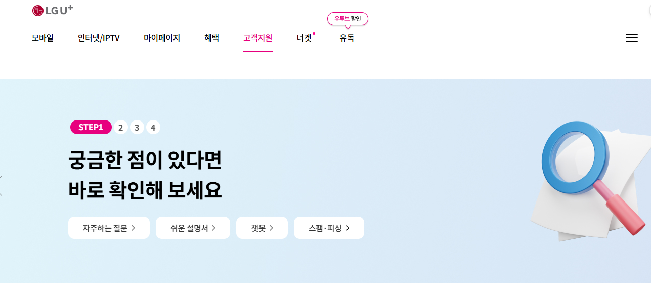 - 자가 진단 기능: 모뎀 리셋, 셋톱박스 재부팅 등 기본 조치 가이드