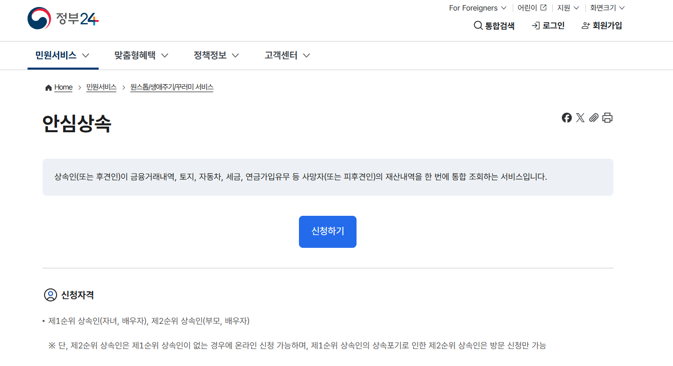 안심상속 원스톱서비스는 상속 권한이 있는 자만 신청할 수 있습니다: