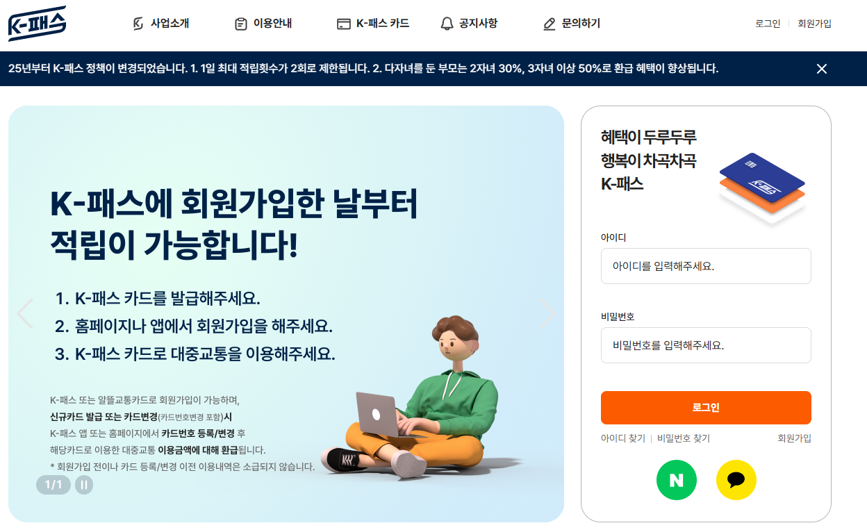 - 회원가입: K패스 홈페이지 또는 앱에서 회원가입 진행