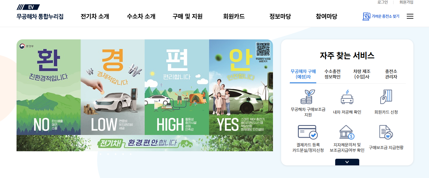 환경부 전기차 홈페이지